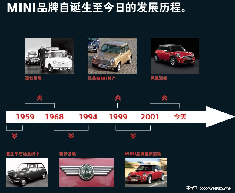 MINI的品牌历史有多长?看一看下面的图就知道了